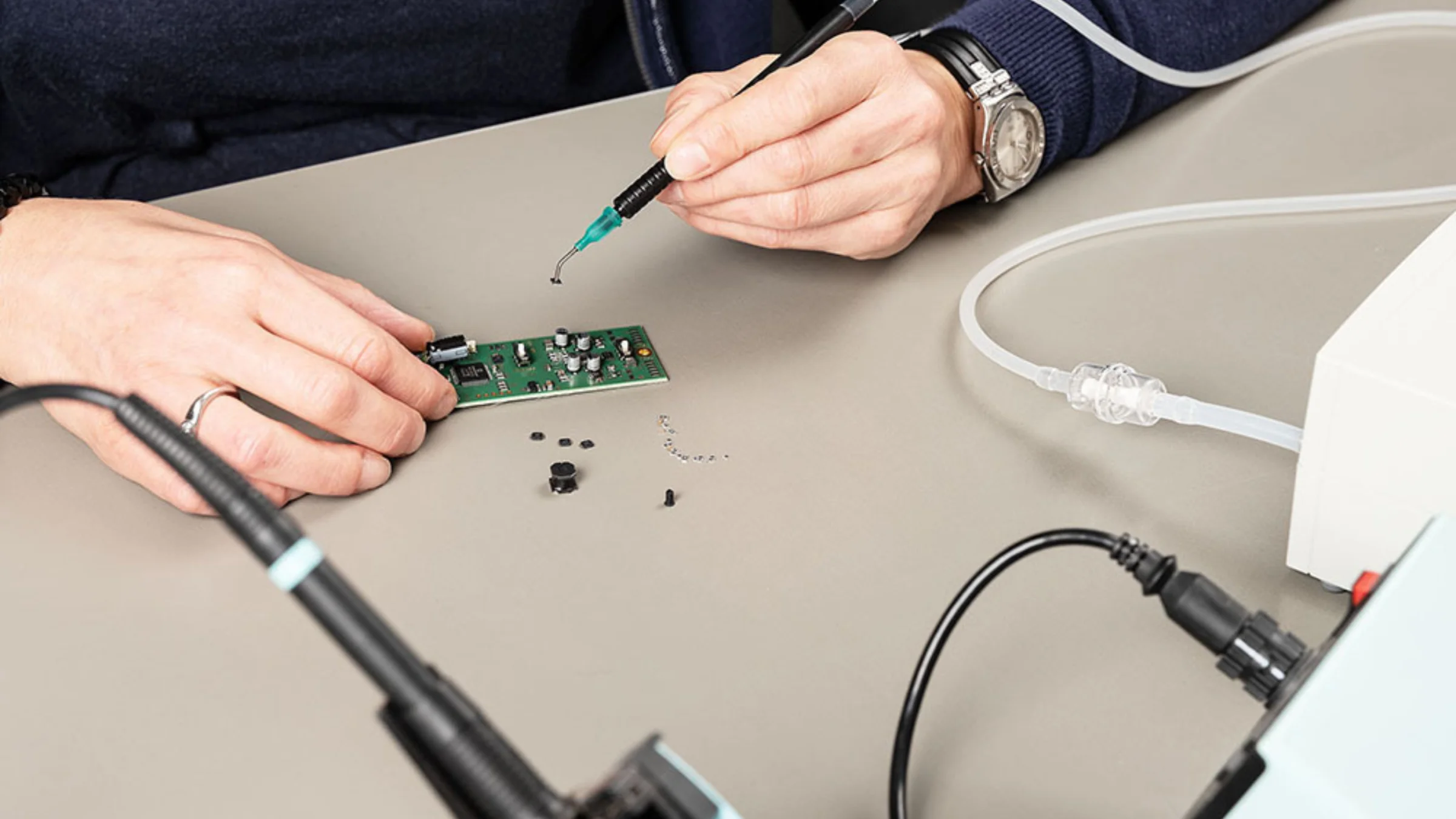 Grosse Hilfe bei der Arbeit mit Kleinteilen: Mit unserer elektrischen Vakuum-Pinzette gehen Ihnen manuelle «Pick-and-place-Arbeiten» leicht von der Hand.